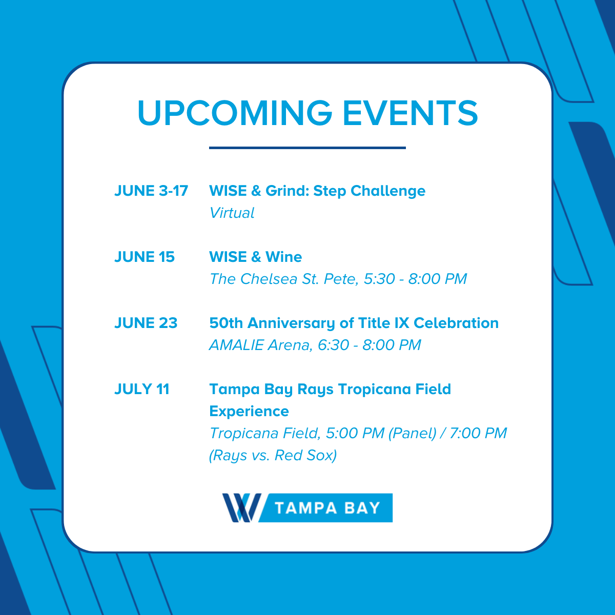 Be sure to RSVP for our upcoming events, including our signature events with founding partners Tampa Bay Lightning and Tampa Bay Rays.